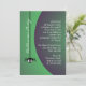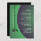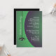 La invitación de la araña de Halloween muestra una araña negra con ojos alarmantes sobresaltados, colgando de arriba, con un fondo verde. Disponible en otros colores. © Morning 6