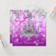 Invitación de fiesta de Sweet Sixteen con lujosa araña rosa y morada. Esta bonita invitación de cumpleaños con araña de cristal plateado y confeti rosa intenso funciona bien para una Quinceañera rosa intenso, fiesta de cumpleaños de mujer, fiesta de cumpleaños de niña, fiesta navideña, fiesta corporativa, o cualquier otra fiesta o evento con tema de rosa intenso o araña y se personaliza fácilmente simplemente eligiendo el botón naranja "¡Personalízalo!" para comenzar a agregar los detalles del evento, estilo de fuente, tamaño y color de la fuente, y redacción. Tenga en cuenta que todos los diseños de tarjetas e invitaciones que encontrará en Zazzle son gráficos impresos sin joyas reales, lazos, partes o piezas en relieve, estampadas o agregadas.