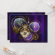 Araña steampunk hecha de oro y acero con relojes antiguos decorados con engranajes dorados sobre fondo púrpura, rayado y texturizado con lentes y engranajes de latón. Estilo Steampunk.