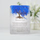 Árbol Mágico Caprichoso del Amor Árbol de Hoja Azul Real en Papel Metálico Tono Plateado Cálido con Tinte de Té con una Superposición de Partitura Antigua y algunos pequeños diseños en espiral para realzar las raíces del amor en esta invitación de boda única del bosque... Esto se muestra en el tamaño grande 5x7 como una solicitud personalizada para publicar en un lugar de negocios o iglesia. Por favor, cambie al tamaño más pequeño 3x5 para una tarjeta de inserción.