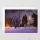 Invitación Árbol de Navidad nevado con luces al anochecer