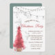 Invitación Árbol de pino rojo acuarela, luces, Fiesta Navidad