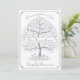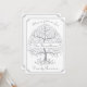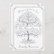 Este diseño elegante, único, moderno, sencillo y con dibujos a mano cuenta con un árbol de la vida en color plateado sobre fondo blanco con un marco plateado. El lado frontal incluye su nombre y texto personalizados. En el reverso se muestran sus detalles personalizados: fecha, hora, ubicación e información de contacto. Esta invitación puede ser una excelente adición a la celebración de su reunión familiar.