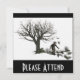 Invitación Árbol viejo del payaso del globo y pájaros negros