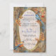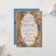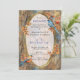 Invitación Árboles altos, hojas otoñales y aves azules.