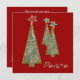 Esta es una invitación festiva para mandarla a todos tus amigos y familia para recibirlos en un Fiesta de Navidades. Cuenta con tres árboles de Navidad con estrellas en la parte superior y la palabra "Paz", y al otro lado un motivo más pequeño de los mismos árboles, y espacios para completar tus detalles.