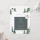 Invitación de Baby Shower. Información en la parte delantera y trasera. Nieve. Árboles de invierno. Azul bebé hace frío afuera. Taza de chocolate caliente.