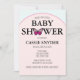 A two-toned pink butterfly replaces the “O” in “Shower,” adding a delicate feminine touch while keeping the overall style classic and refined. The traditional serif typography paired with the airy color palette makes this invitation ideal for a sophisticated yet charming baby girl shower.