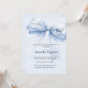 Un fondo azul claro y suave, decorado con un gran arco azul. Personalice y agregue un nombre y detalles del fiesta. Texto en la proa: ¡Es un niño!