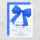 Un fondo blanco, decorado con un gran arco azul real. Personalice y agregue un nombre y detalles del fiesta.