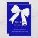 Fondo de color azul real, decorado con un gran arco blanco. Personalice y agregue un nombre y detalles del fiesta.