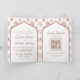 Sorprenda a sus invitados con esta invitación plegada en un boda con un arco elegante contra un fondo de damasco con código QR para RSVP en línea. Simplemente agregue los detalles de su evento en esta plantilla fácil de usar para convertirla en una invitación única.