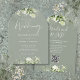 Esta invitación de boda floral de verde salvia botánico moderno se puede personalizar con su información en tipografía elegante con los detalles de su sitio web de boda y su código QR en el reverso. Diseñado por Thisisnotme