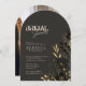 Eleva tus invitaciones de despedida de soltera con nuestra "Invitación de Despedida de Soltera con Arco Minimalista Floral Dorado de Lujo y 1 Foto". Este diseño elegante en forma de arco presenta un llamativo fondo oscuro adornado con delicados acentos florales dorados. La tipografía audaz y elegante para "Despedida de Soltera" y los detalles personalizados para la futura novia agregan un toque de lujo. La parte trasera de la invitación muestra una hermosa foto de la futura novia. El diseño minimalista y la rica paleta de colores crean un aspecto sofisticado y atemporal, perfecto para cualquier despedida de soltera.