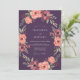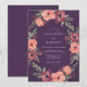 Una corona artística de flores profundas de ciruela y coral adorna este diseño romántico. El exuberante follaje verde crea un borde natural y fluido, evocando un ambiente caprichoso y etéreo perfecto para una ocasión especial.