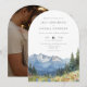 Esta elegante invitación de boda de flores silvestres de montaña en acuarela se puede personalizar con su información en tipografía chic y una foto especial en el reverso. Diseñado por Thisisnotme©