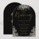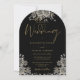 Invitación Arco de Boda Floral de Rosas Góticas Negro y Dorad