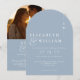 Esta polvorienta invitación a una boda en monograma minimalista azul puede ser personalizada con su información en tipografía moderna, su foto especial y la dirección de su sitio web boda código QR al revés. Diseñado por Thisisnotme©