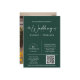 Esta invitación presenta un elegante estilo minimalista moderno con una hermosa caligrafía de la letra "el boda de" sobre un fondo verde esmeralda. Nota: En la parte delantera, la frase "el boda de" y "recepción a seguir", las líneas y otros elementos de arte gráfico no pueden ser borrados, editados o cambiados. Es fácil personalizar esta invitación a la boda — sólo personaliza la redacción del texto y reemplaza la foto y el código QR con el tuyo. Puede personalizar fácilmente la invitación con el texto como descarga digital y enviarla electrónicamente y compartirla con sus invitados a través de mensajes de texto, correo electrónico o medios sociales. También puede enviar o enviar la invitación a sus invitados. O se pueden obtener las dos cosas — invitación impresa y recibir la invitación en formato digital como descarga instantánea.