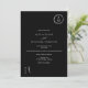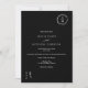 Clásico, elegante y suave monograma floral, foto en arco de boda negro con pequeños contornos florales, añada su monograma de pareja, con blanco y negro boho una clásica invitación a la boda con un toque moderno, agregue su foto en la parte posterior en forma de arco.