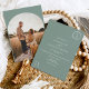Clásico, elegante y suave foto en arco de boda verde sabio con floridos contornos florales pequeños, añada su monograma de pareja, con verde sabio boho, una clásica invitación a la boda con un toque moderno, agregue su foto en la parte posterior en forma de arco.