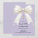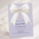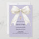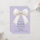 Invite a sus invitados con esta sofisticada invitación de Confirmación. El diseño presenta un lujoso lazo de satén marfil adornado con delicadas perlas y una cruz dorada brillante sobre un fondo suave y lavanda apagado. Es una hermosa opción para una joven que celebra su Confirmación.
