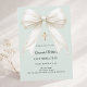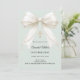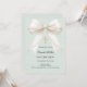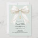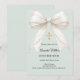 Un fondo suave y pálido de color verde salvia, decorado con un lazo grande con perlas y una cruz dorada. Personaliza y añade un nombre y detalles detalles.