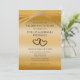 Invita a amigos y familiares a una hermosa fiesta de bodas de oro por el 50 aniversario de bodas. Personaliza esta invitación de aniversario única y elegante con los nombres de la pareja, la dirección del evento, la hora y la fecha de la fiesta, y más texto editable según sea necesario. Creé este original diseño de arco envolvente en tonos dorados modernos sobre un gradiente beige para ti. No es de papel de oro. La tipografía negra contemporánea simple se puede editar. Los dos corazones entrelazados dan un toque romántico. El sencillo texto con letra de "celebrando 50 años" se puede editar a cualquier número para otro año de aniversario si es necesario.