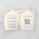Sorprenda a sus invitados con esta invitación plegada en un boda con un arco elegante contra un fondo de patrón de diamante con código QR para RSVP en línea. Simplemente agregue los detalles de su evento en esta plantilla fácil de usar para convertirla en una invitación única.