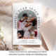 Elegante anuncio de boda íntima o privada e invitación a la recepción. La parte delantera presenta su foto en un marco arqueado y "Happily Ever After Party" en tipografía serif clásica. Debajo de su foto puede agregar sus nombres, fecha de la boda y ubicación. En el reverso puede personalizar su mensaje con más detalle y agregar detalles de la fiesta o recepción y sus nombres en una escritura similar a una firma.