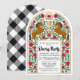 Inicie el Derby con estilo con esta invitación de caballo floral y rosas rojas sobre un fondo blanco con un patrón de cuadros en el reverso. Todos los elementos de texto se pueden cambiar, lo que permite que este diseño se utilice para varios eventos, como invitaciones de boda de equitación con clase, aperturas de graneros y más.