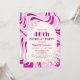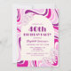 Flor retro con marco de arco sobre líneas violetas y onduladas rosadas invitación de cumpleaños. ¡Se puede personalizar para cualquier edad!
