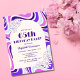 Flor retro con marco de arco sobre líneas violetas y onduladas azules invitación de cumpleaños. ¡Se puede personalizar para cualquier edad!