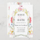 Celebra tu amor con esta romántica tarjeta Save the Date de flores silvestres. Con un delicado arco de flores pintadas a mano en colores, este diseño es perfecto para bodas de jardín, celebraciones boho o lugares rústicos en el campo. Personaliza con tus nombres, fecha y ubicación para crear un anuncio único.
