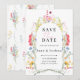 Celebra tu amor con esta romántica tarjeta Save the Date de flores silvestres. Con un delicado arco de flores pintadas a mano en colores, este diseño es perfecto para bodas de jardín, celebraciones boho o lugares rústicos en el campo. Personaliza con tus nombres, fecha y ubicación para crear un anuncio único.