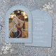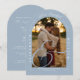 Invitación Arco de Foto de Boda de Azul Polvoriento con Calig