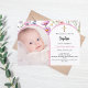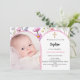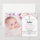 Invitación Arco de fotos florales rosadas niña cruz Bautizo