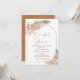 Invitación de boda de shower con caligrafía moderna en oro rosa falso en estilo bohemio con dos arreglos florales encantadores con hierba de pampas en tonos naturales y terracota y un arco de terracota.