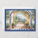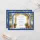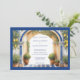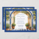 Costa de Amalfi Italia invitación de boda con arco mediterráneo, con baldosas azules, limón y marco azul.