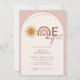 Hermosa invitación de arco de primer cumpleaños bohemio con arcoíris y sol.
