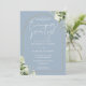 Esta elegante invitación de boda con arco dorado, vegetación botánica y flores en azul polvoriento para una noche de fiesta se puede personalizar con su información en tipografía chic. Diseñado por Thisisnotme©