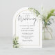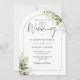 Esta elegante invitación de boda con arco floral verde botánico dorado puede ser personalizada con su información en tipografía chic con su foto especial en el reverso. Diseñado por Thisisnotme©