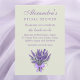 Personaliza esta encantadora invitación de ducha nupcial floral, una delicada fusión de elegancia y feminidad que marcará el tono para una celebración serena. Adornada con exquisitas flores de lavanda atadas con un lazo, delicadamente entrelazadas con exuberante follaje, contra un suave fondo verde pastel, las vibrantes flores resaltan, creando un diseño cautivador que es a la vez chic y atemporal.