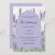 Delantera: flores de lavanda como fondo y marco de arco. Personalice y sus nombres y detalles. Atrás: agregue la URL del sitio web boda al código QR para obtener más detalles y/o RSVP.