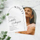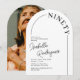 Descubre la elegancia de la simplicidad con nuestras invitaciones para una fiesta de cumpleaños número 90 minimalistas. Con un fondo blanco crujiente, una forma de arco elegante, una fuente serif atemporal y una plantilla de texto personalizable, estas invitaciones son un elegante homenaje a los 90 años del homenajeado. En la parte posterior, tiene la opción de incluir (o excluir) una foto del cumpleañero para darle un toque personal. Celebre este hito con estilo, sofisticación y un toque de encanto personal.
