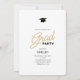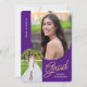 Invite a amigos y familiares a su "Fiesta Grad" con la moderna invitación de 2 fotos, moradas y doradas. El diseño incluye fotos con un borde arqueado. El texto personalizado, al revés, le permite personalizar con los detalles de su fiesta.