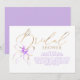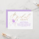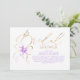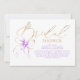 Celebre a la futura novia con esta romántica invitación de boda en tonos púrpura y dorado, que presenta caligrafía elegante y un lazo de acuarela suave acentuado con delicados tonos de lavanda.