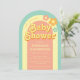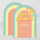 Invitación Arco Retro Groovy Cumpleaños de Bebé Arcoíris Flor