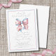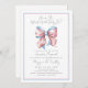 Él o Ella, ¿Cómo será el bebé? Únase a los emocionados padres para descubrir el sexo de su bebé con esta encantadora invitación a la fiesta de revelación de género. El diseño presenta un delicado lazo de acuarela en tonos suaves de rosa y azul de bebé, enmarcado por bordes rosados y azules que añaden un toque de color a los bordes. La elegante mezcla de tipografía serif gris y escritura complementa perfectamente el tema clásico, lo que la convierte en una forma ideal de celebrar a los futuros padres. Puede personalizar los colores de la fuente y cambiar el fondo frontal para que coincida con sus preferencias, mientras que la parte posterior permanece simple para mantener la elegancia delicada y atemporal del diseño. Invitación a la fiesta de revelación de género con lazo rosa y azul, tipografía de escritura elegante y acuarela bonita.