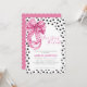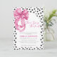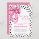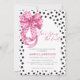 Esta minimalista invitación a la ducha de novia con un arco de color rosa rosado incluye puntos de polka rosados que se inclinan con puntos de polka blancos con un texto que dice que está atando el nudo. Un arco rosa perfecto que ata el tema de la ducha nupcial para tu gran día.